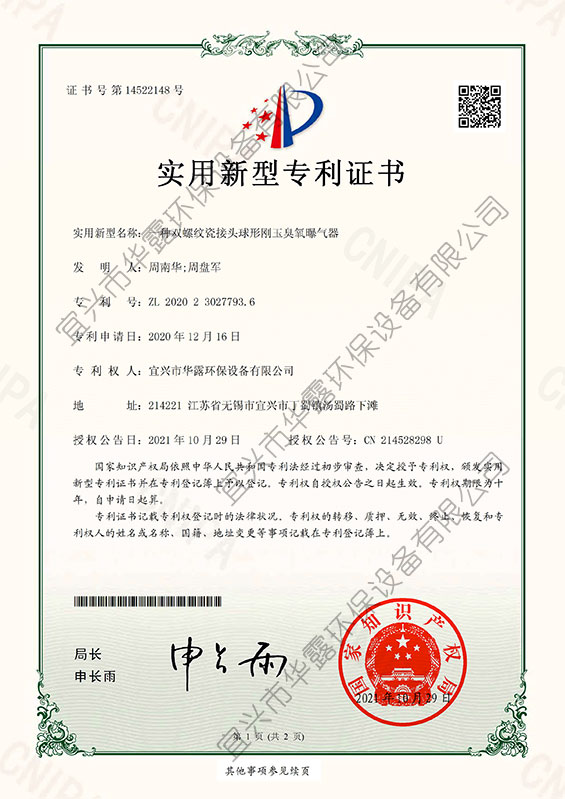 | 上一頁(yè):新型紫砂泥陶瓷曝氣器(HL-O型) 下一頁(yè):雙螺紋瓷接頭球形剛玉臭氧曝氣器HL-AC型檢驗(yàn)報(bào)告 |